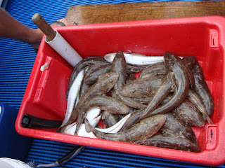 Mmmmn, flathead! I loved the wooden mallet to knock the fish out!
